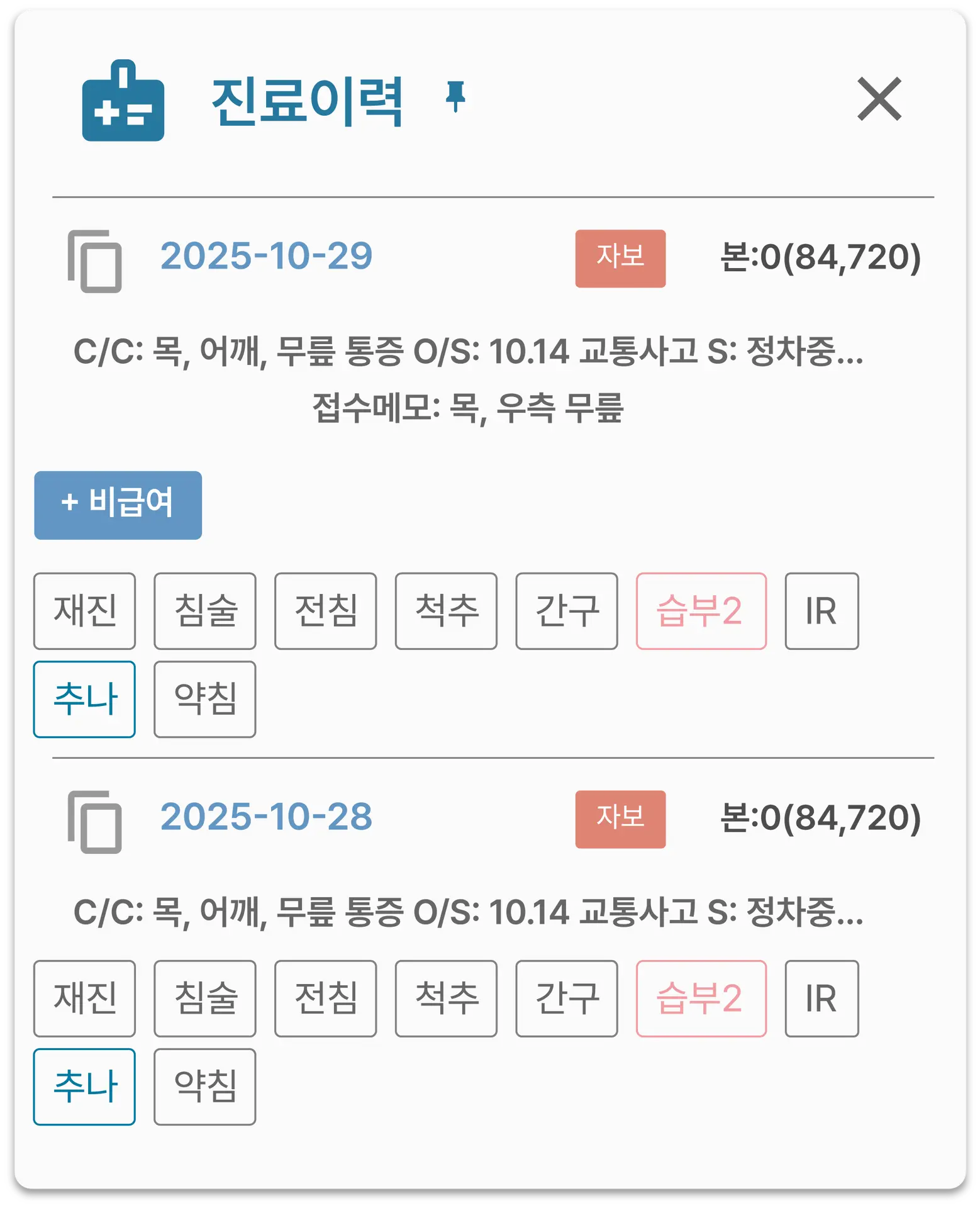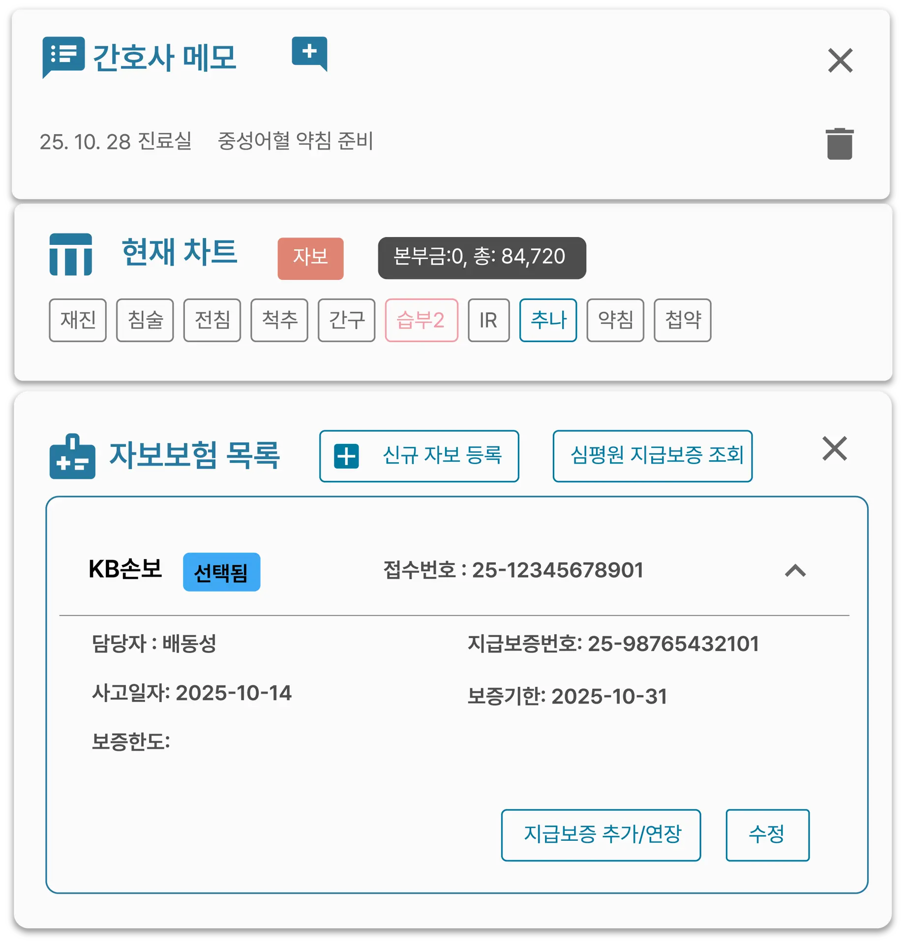 차트가 안정화되면, 현재의 UI를 변경해서 실손조회화면을 직접 화면에 직접 검색하고 화면에 나온 보험종류만 나인티나인 리모트 서버에서 분석해서 보내주는 방식으로 변경을 할 예정입니다.