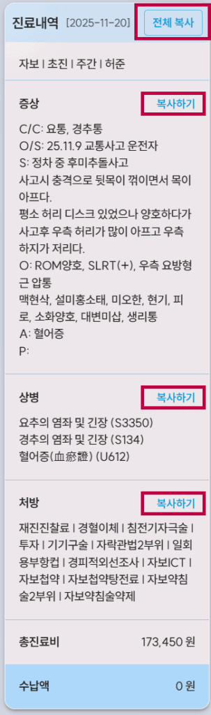 이 부분은 AI 모델을 가져온 후 모델링 최적화를 한 후, 자체 진료차트용으로 학습을 한 후 자체 내부 서버에서 AI 지원을 해야 서비스가 가능합니다.